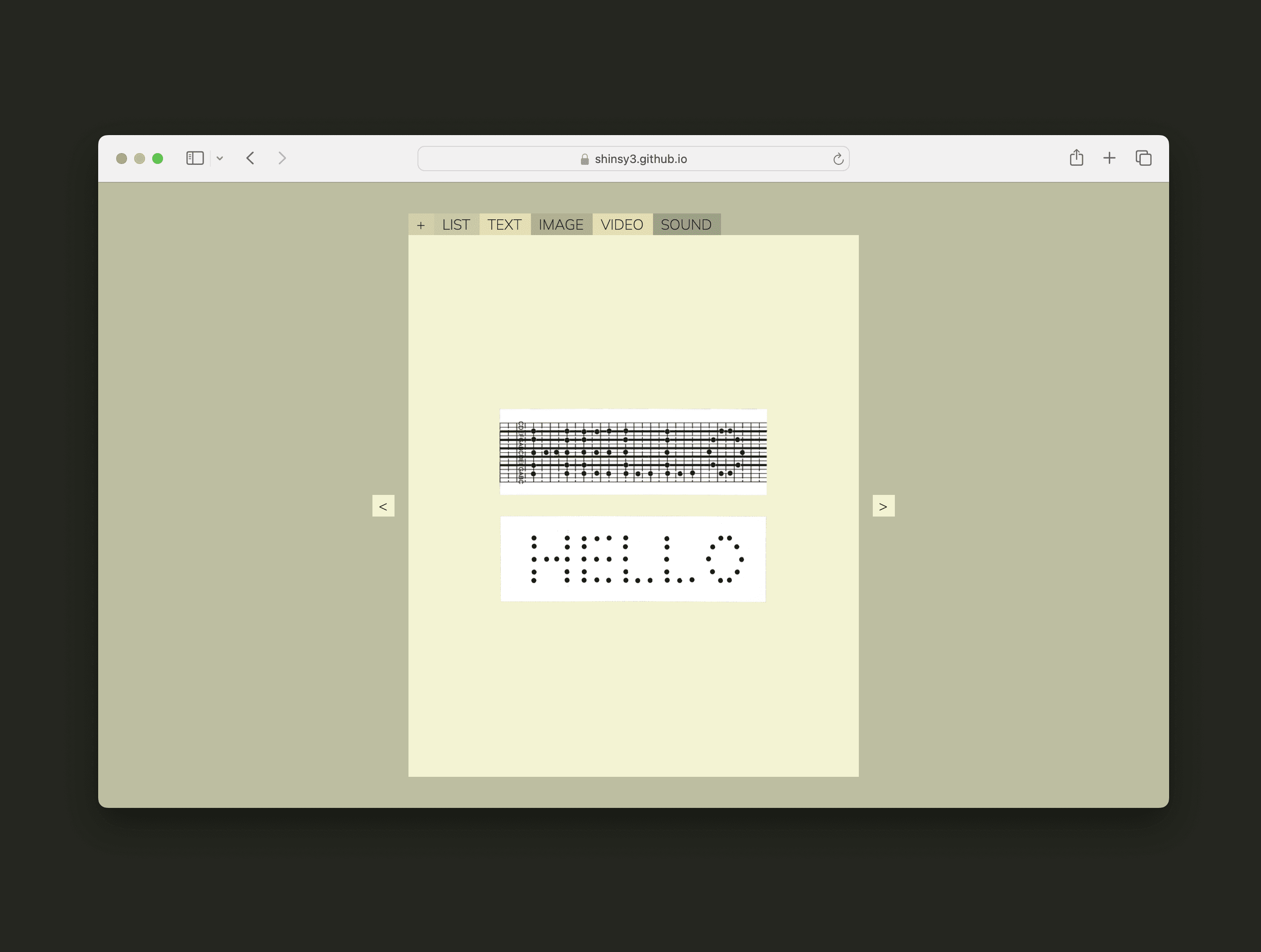 Part of this project is to design, build, prototype, and develop a visual translation machine. My idea was to work with a machine that already exists in our world, but change the function and interpret it differently than the original purpose. Using a music box and paper strips, I created many languages, symbols, numbers, etc to test out how all of these can be translated into a visual sound.